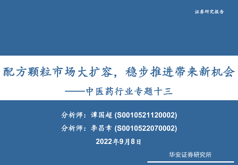 【华安证券】【20220908】中医药行业专题十三:配方颗粒市场大扩容,稳步推进带来新机会-33页