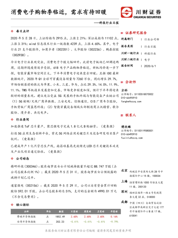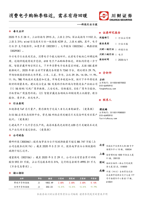 【川财证券】【20200601】科技行业日报:消费电子购物季临近,需求有待回暖-4页