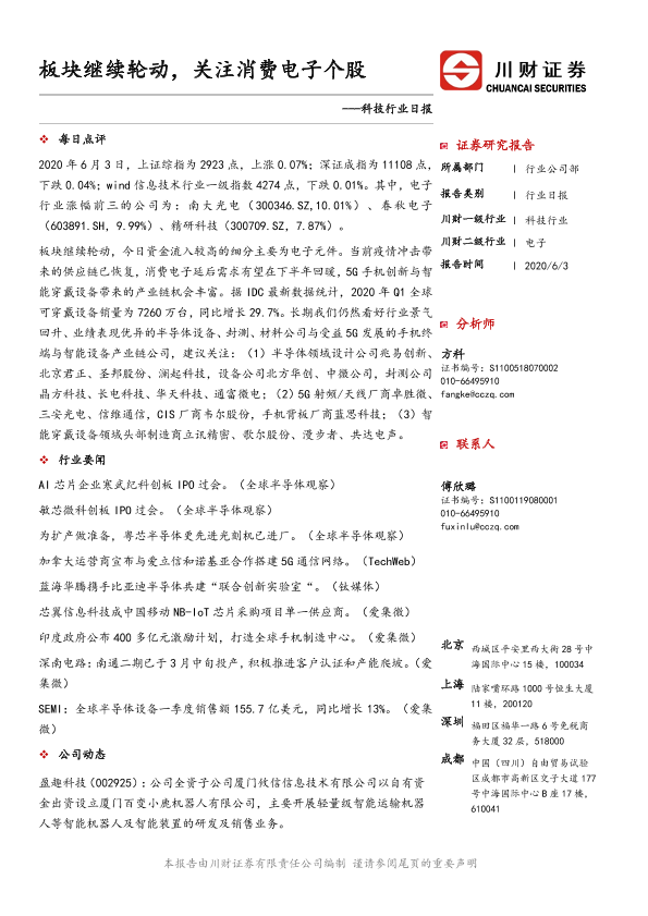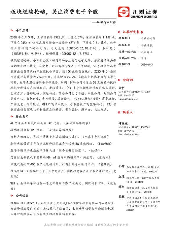 【川财证券】【20200603】科技行业日报:板块继续轮动,关注消费电子个股-4页