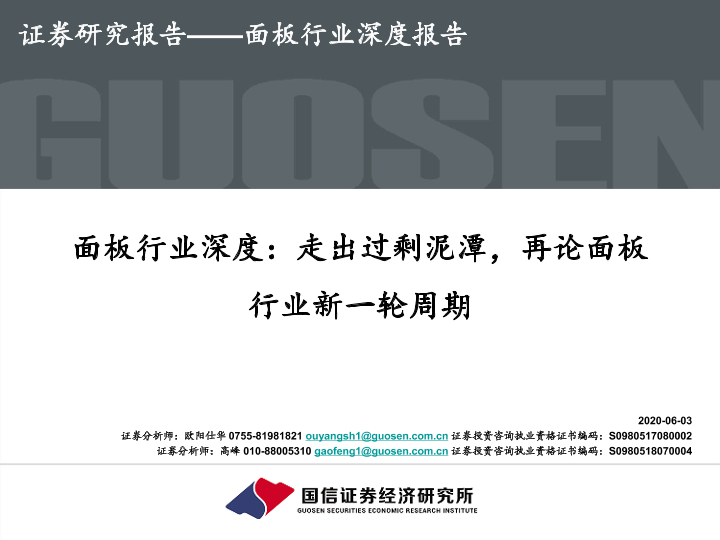 【国信证券】【20200603】面板行业深度:走出过剩泥潭,再论面板行业新一轮周期-30页
