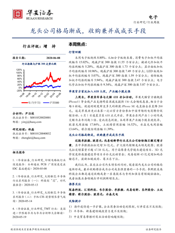 【华安证券】【20200608】电子行业周报:龙头公司格局渐成,收购兼并成成长手段-11页