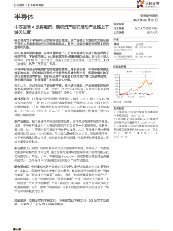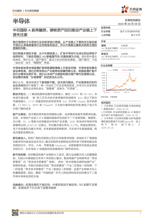 【天风证券】【20200608】20200608-天风证券-半导体行业研究周报:中芯国际A股再融资,硬核资产回归推动产业链上下游关注度-12页