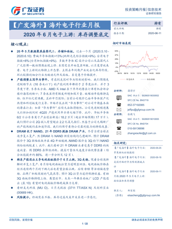 【广发证券】【20200611】2020年6月电子上游:库存调整底定-22页