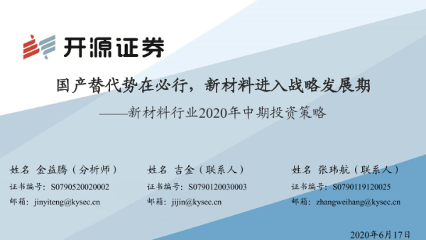 【开源证券】【20200617】新材料行业2020年中期投资策略:国产替代势在必行,新材料进入战略发展期-53页