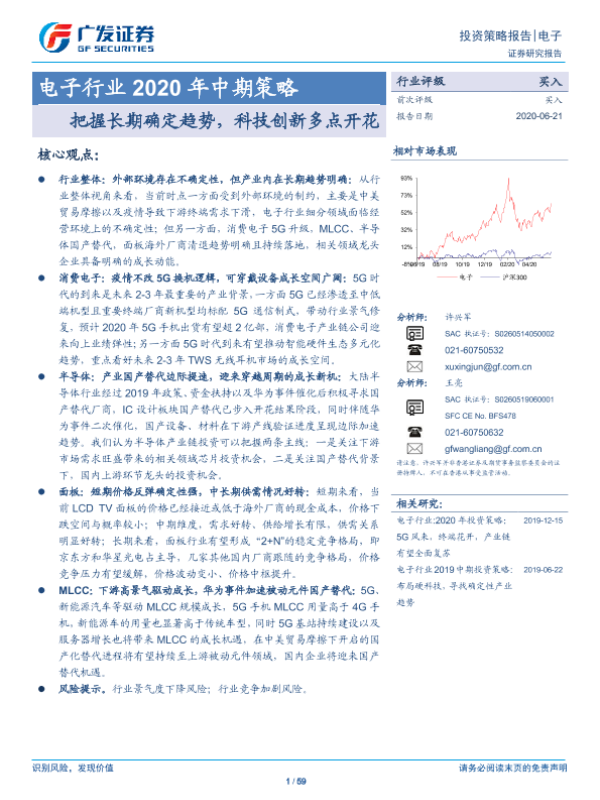 【广发证券】【20200621】电子行业2020年中期策略:把握长期确定趋势,科技创新多点开花-59页