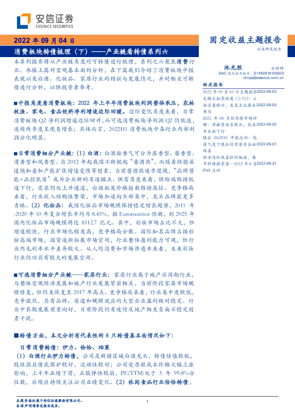 【安信证券】【20220904】产业链看转债系列六:消费板块转债梳理(下)-27页
