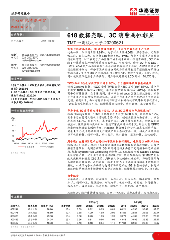 【华泰证券】【20200621】TMT一周谈之电子:618数据亮眼,3C消费属性彰显-12页