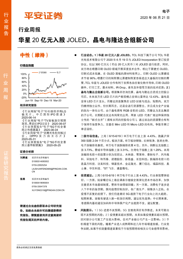 【平安证券】【20200621】20200621-平安证券-电子行业周报:华星20亿元入股JOLED,晶电与隆达合组新公司-5页