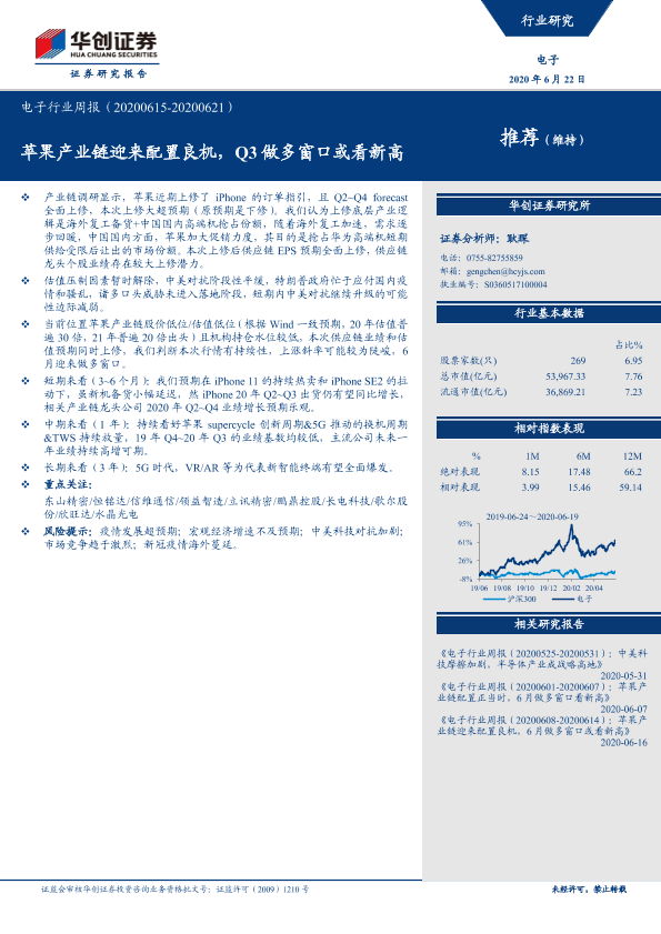 【华创证券】【20200622】20200622-华创证券-电子行业周报:苹果产业链迎来配置良机,Q3做多窗口或看新高-22页