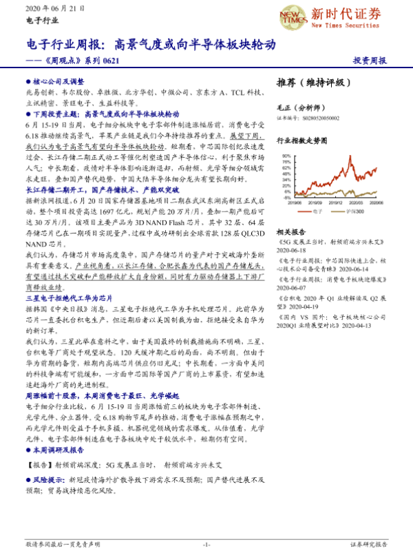 【新时代证券】【20200621】电子行业周报:高景气度或向半导体板块轮动——《周观点》系列-18页