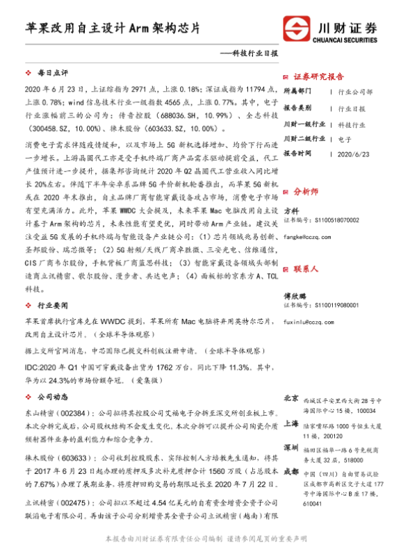 【川财证券】【20200623】科技行业日报:苹果改用自主设计Arm架构芯片-4页