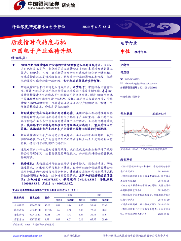 【银河证券】【20200623】后疫情时代的危与机 中国电子产业亟待升级-39页