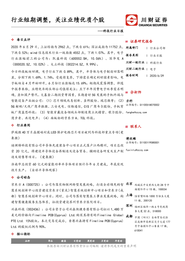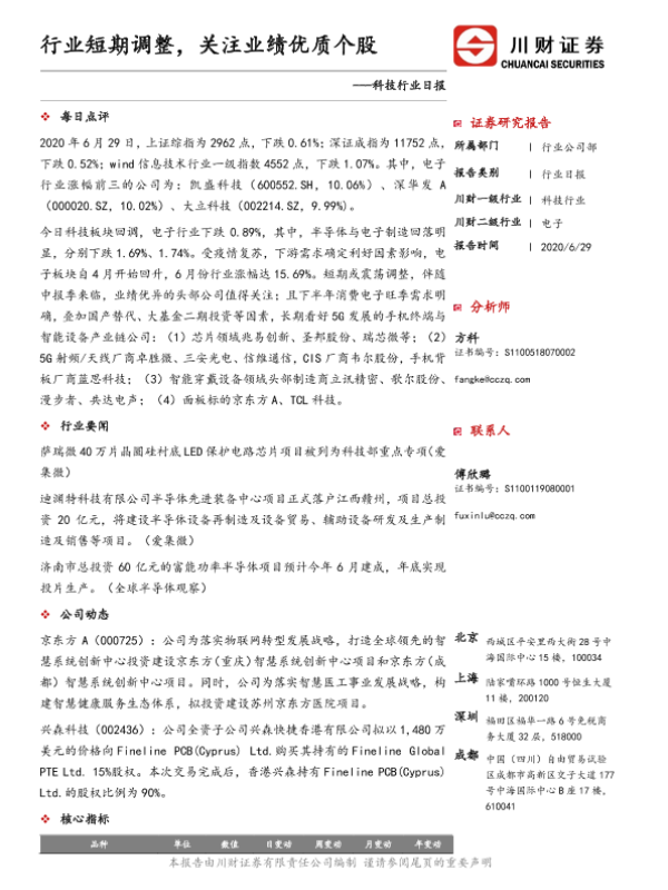 【川财证券】【20200629】科技行业日报:行业短期调整,关注业绩优质个股-4页