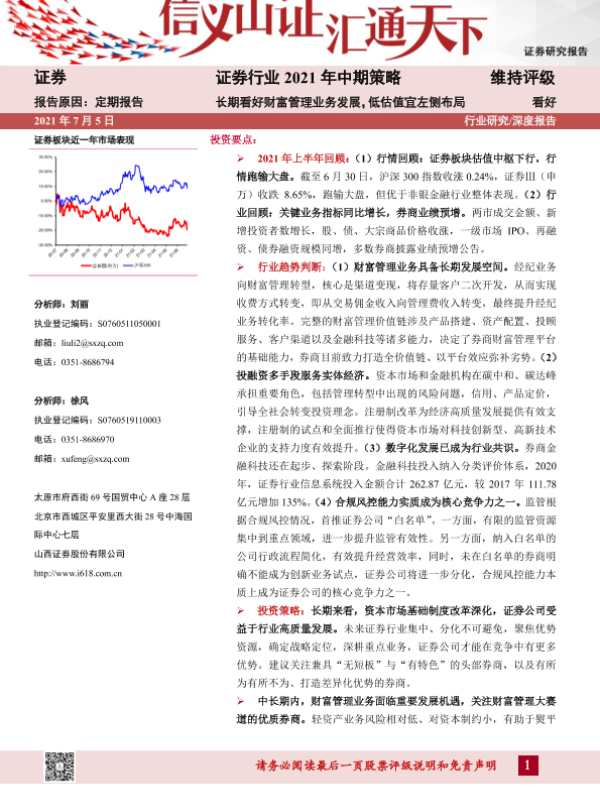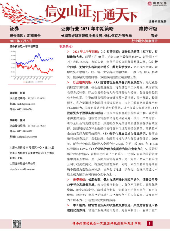 【山西证券】【20210705】证券行业2021年中期策略:长期看好财富管理业务发展,低估值宜左侧布局-26页
