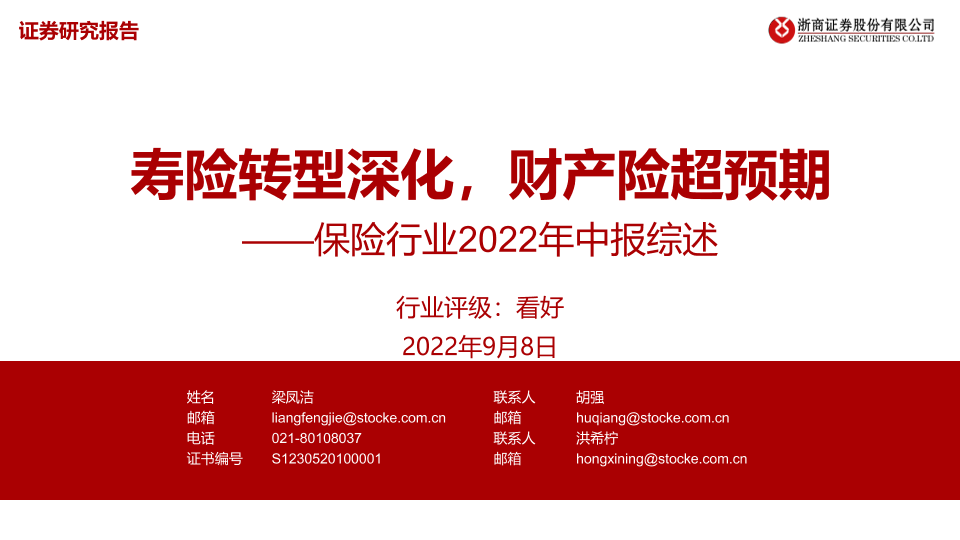 【浙商证券】【20220908】保险行业2022年中报综述:寿险转型深化,财产险超预期-24页