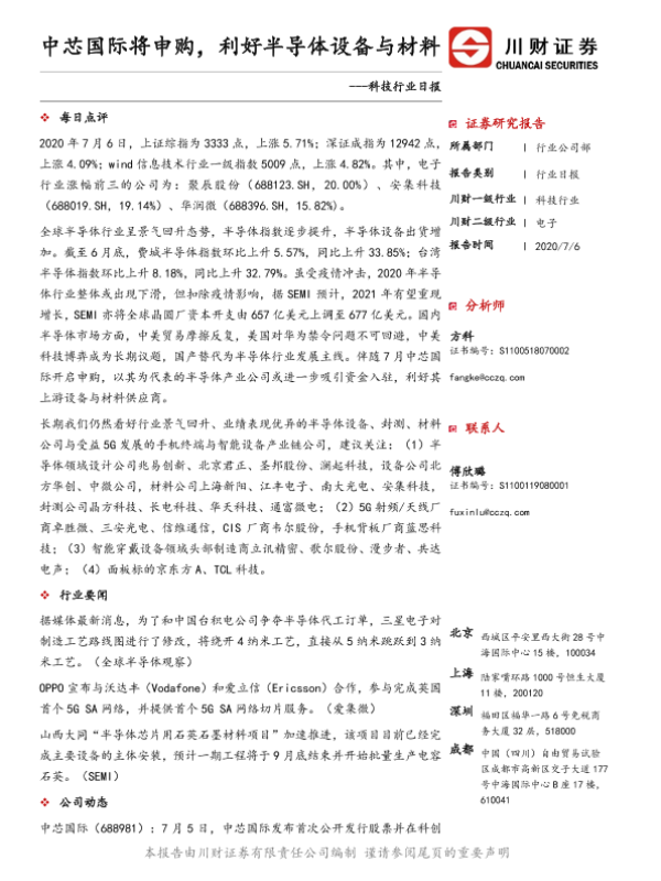 【川财证券】【20200706】科技行业日报:中芯国际将申购,利好半导体设备与材料-5页