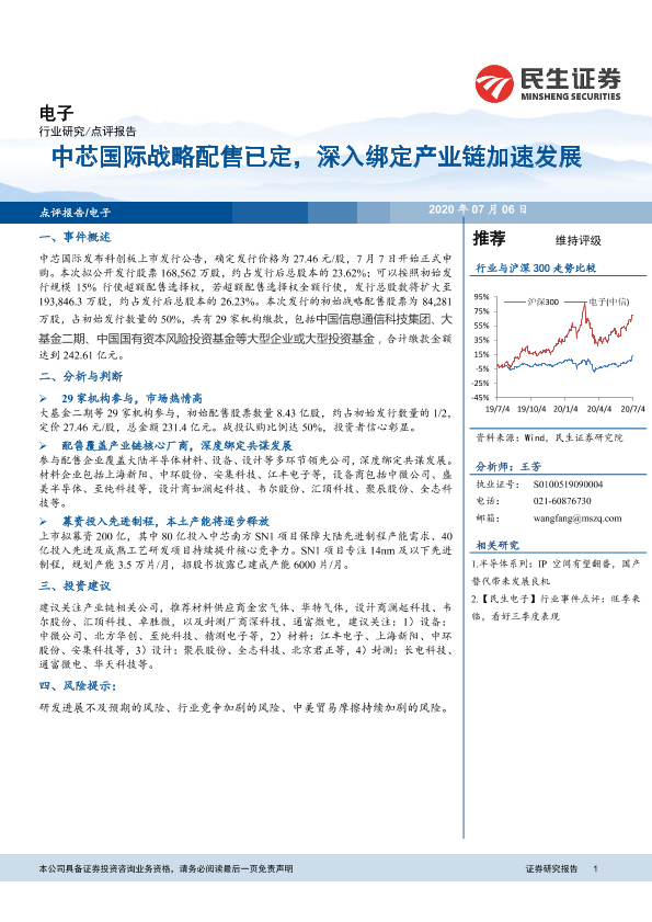 【民生证券】【20200706】中芯国际战略配售已定,深入绑定产业链加速发展-4页