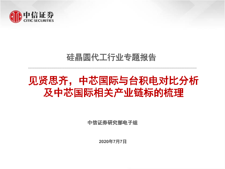 【中信证券】【20200707】见贤思齐,中芯国际与台积电对比分析及中芯国际相关产业链标的梳理-61页