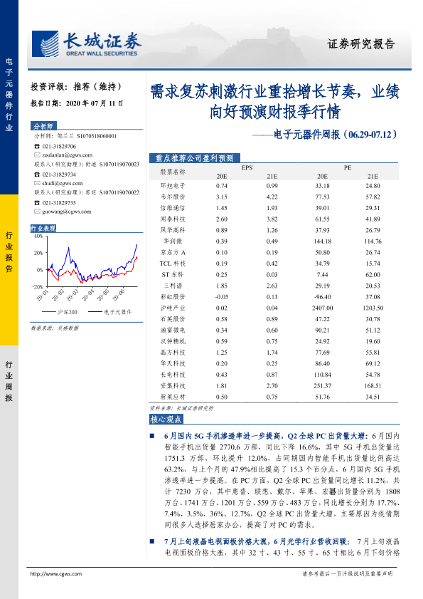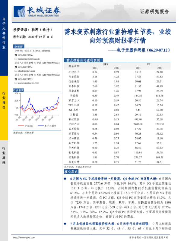 【长城证券】【20200711】20200711-长城证券-电子元器件周报:需求复苏刺激行业重拾增长节奏,业绩向好预演财报季行情-23页
