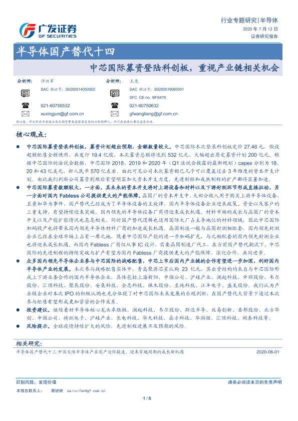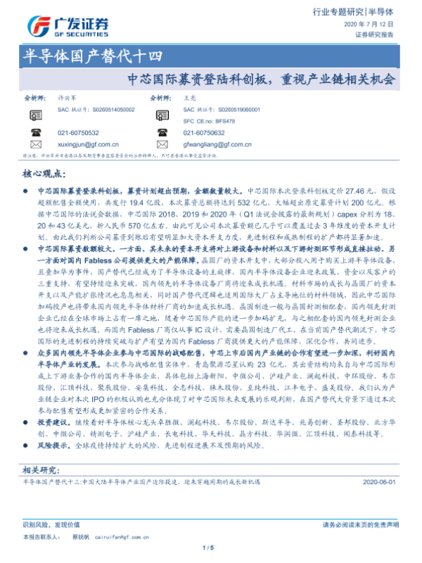 【广发证券】【20200712】半导体国产替代十四:中芯国际募资登陆科创板,重视产业链相关机会-5页