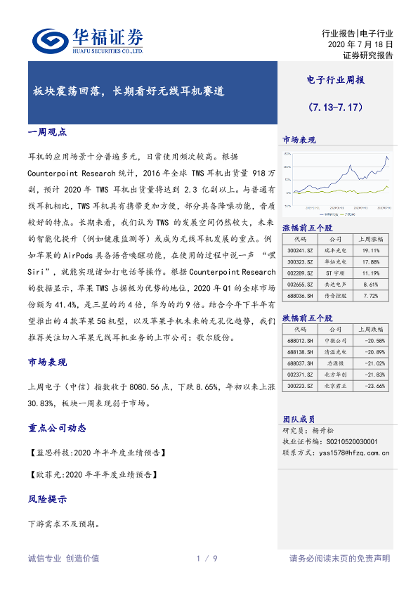 【华福证券】【20200718】20200718-华福证券-电子行业周报:板块震荡回落,长期看好无线耳机赛道-9页