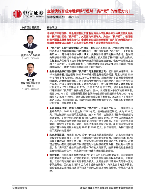 【中信证券】【20220905】债市聚焦系列:金融债能否成为缓解银行理财“资产荒”的增配方向?-29页