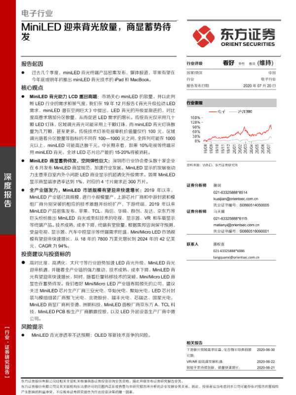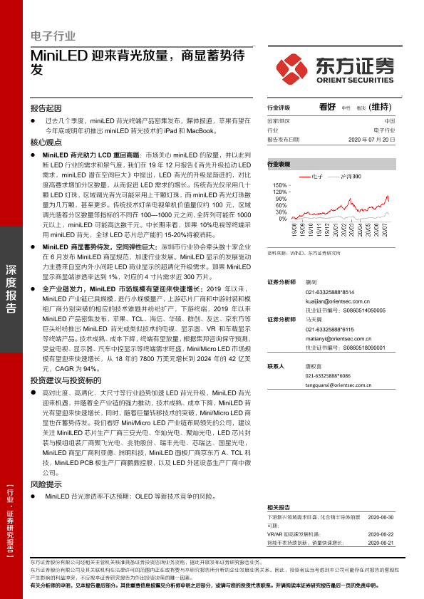 【东方证券】【20200720】电子行业:MiniLED迎来背光放量,商显蓄势待发-19页