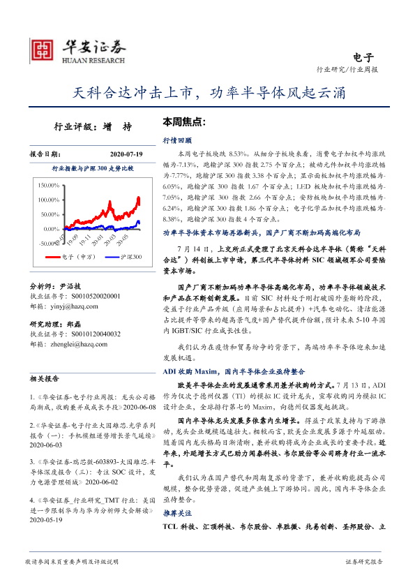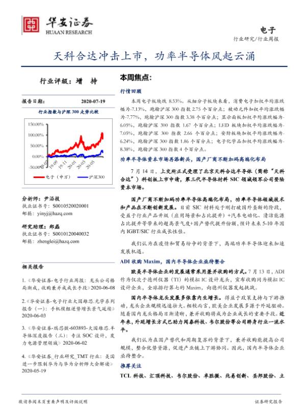 【华安证券】【20200719】20200719-华安证券-电子行业周报:天科合达冲击上市,功率半导体风起云涌-13页