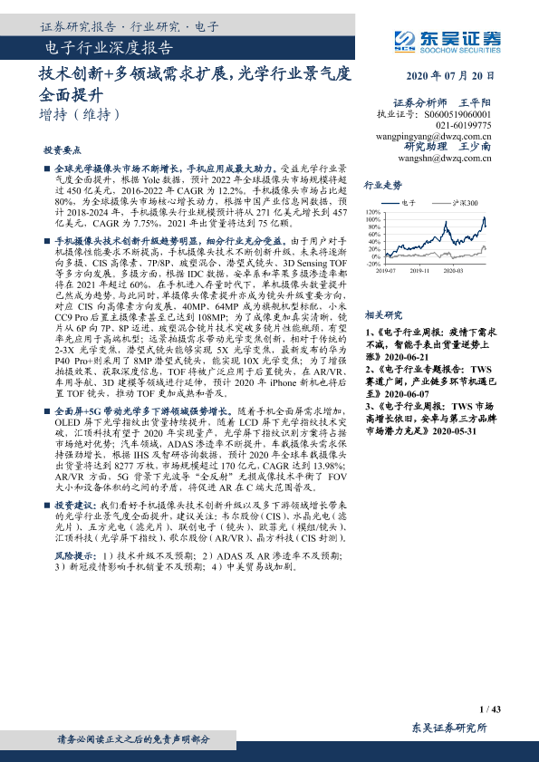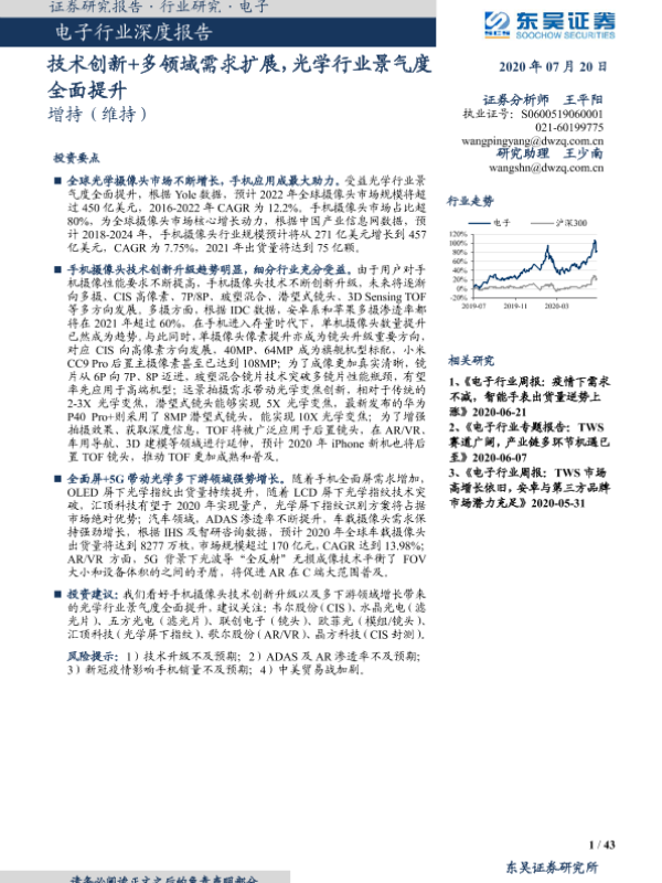 【东吴证券】【20200720】电子行业深度报告:技术创新+多领域需求扩展,光学行业景气度全面提升-43页