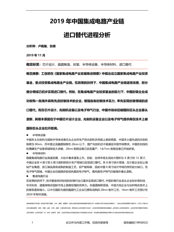 【头豹研究院】【201911】2019年中国集成电路产业链进口替代进程分析-23页