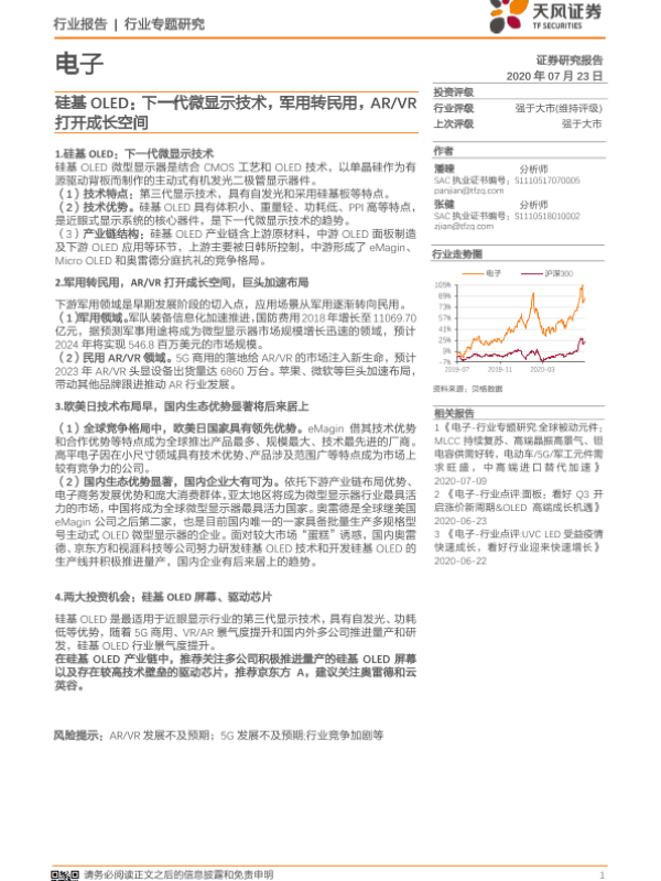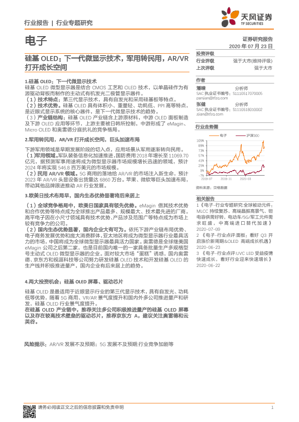 【天风证券】【20200723】20200723-天风证券-电子行业专题研究:硅基OLED:下一代微显示技术,军用转民用,AR VR打开成长空间-37页