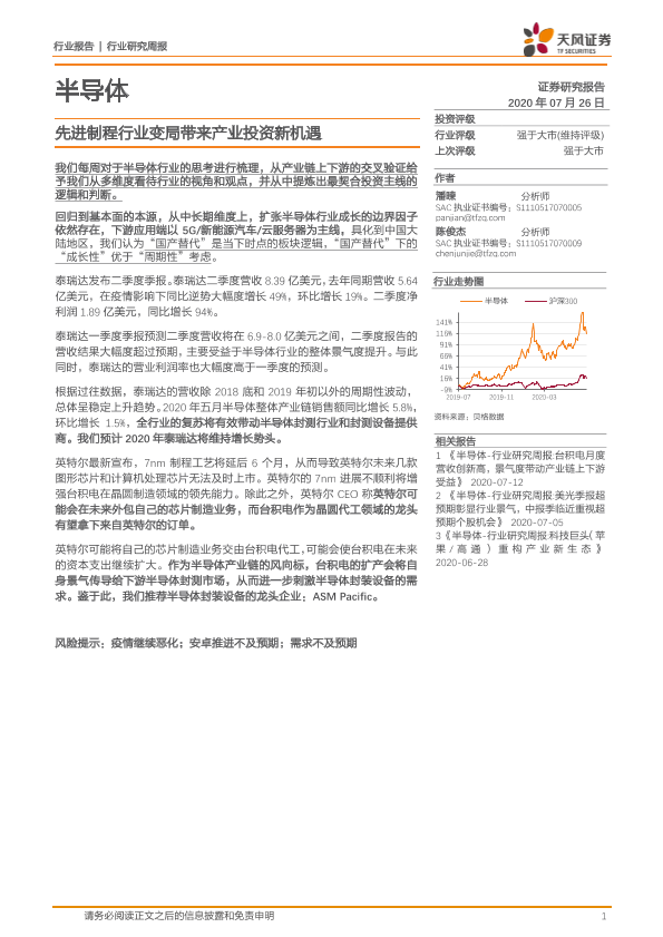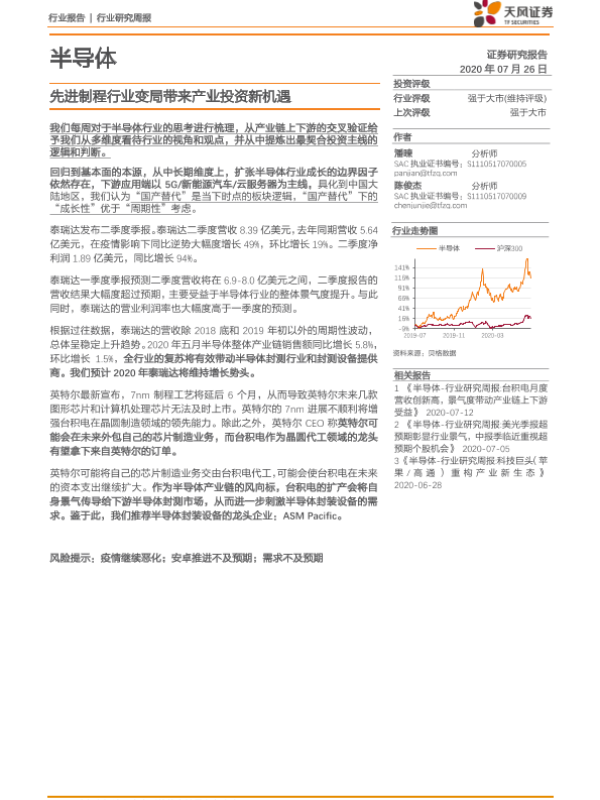 【天风证券】【20200726】20200726-天风证券-半导体行业研究周报:先进制程行业变局带来产业投资新机遇-13页