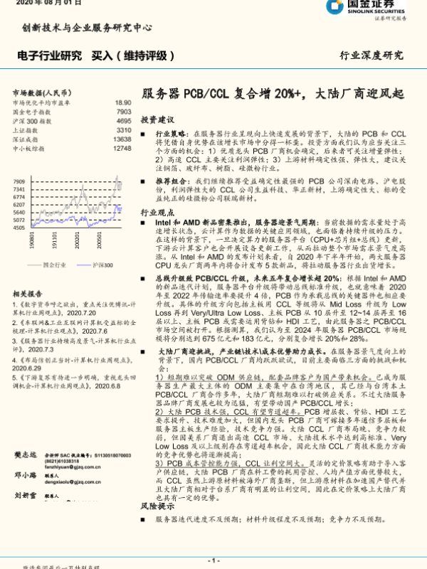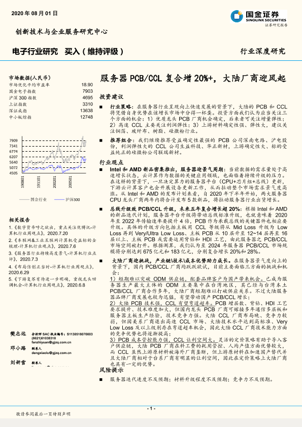 【国金证券】【20200801】电子行业研究:服务器PCB CCL复合增20%+,大陆厂商迎风起-35页