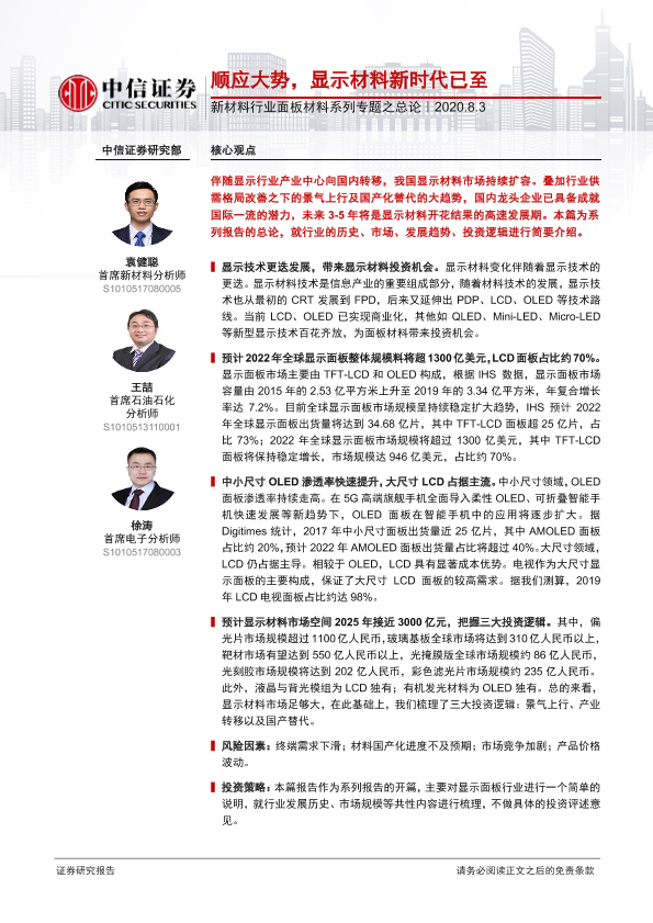 【中信证券】【20200803】新材料行业面板材料系列专题之总论:顺应大势,显示材料新时代已至-24页
