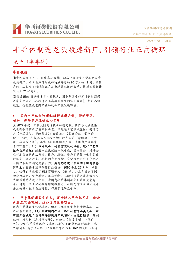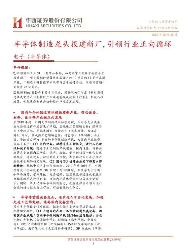 【华西证券】【20200805】半导体制造龙头投建新厂,引领行业正向循环-6页