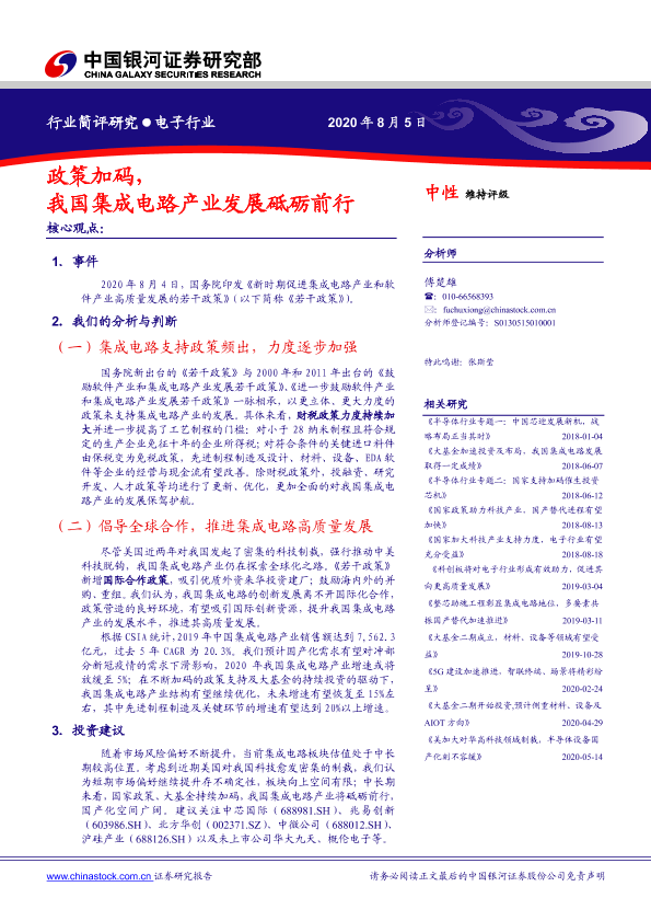 【银河证券】【20200805】政策加码,我国集成电路产业发展砥砺前行-5页