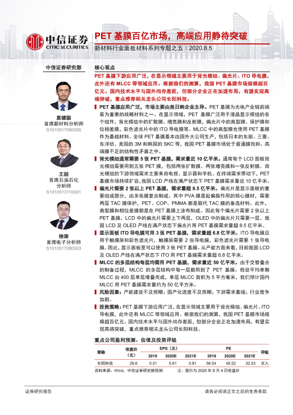 【中信证券】【20200805】新材料行业面板材料系列专题之五:PET基膜百亿市场,高端应用静待突破-25页