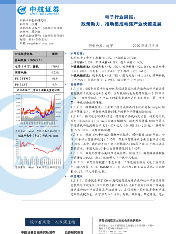 【中航证券】【20200809】20200809-中航证券-电子行业周报:政策助力,推动集成电路产业快速发展-4页