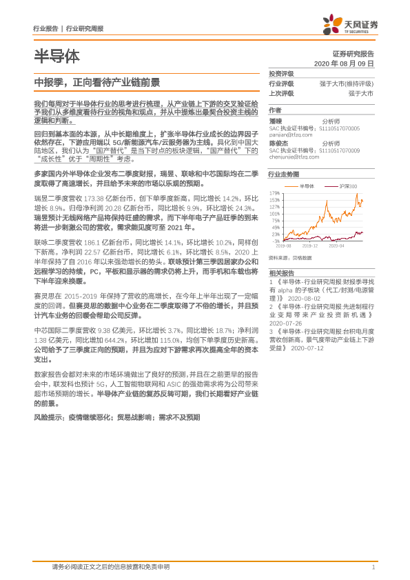 【天风证券】【20200809】20200809-天风证券-半导体行业研究周报:中报季,正向看待产业链前景-13页