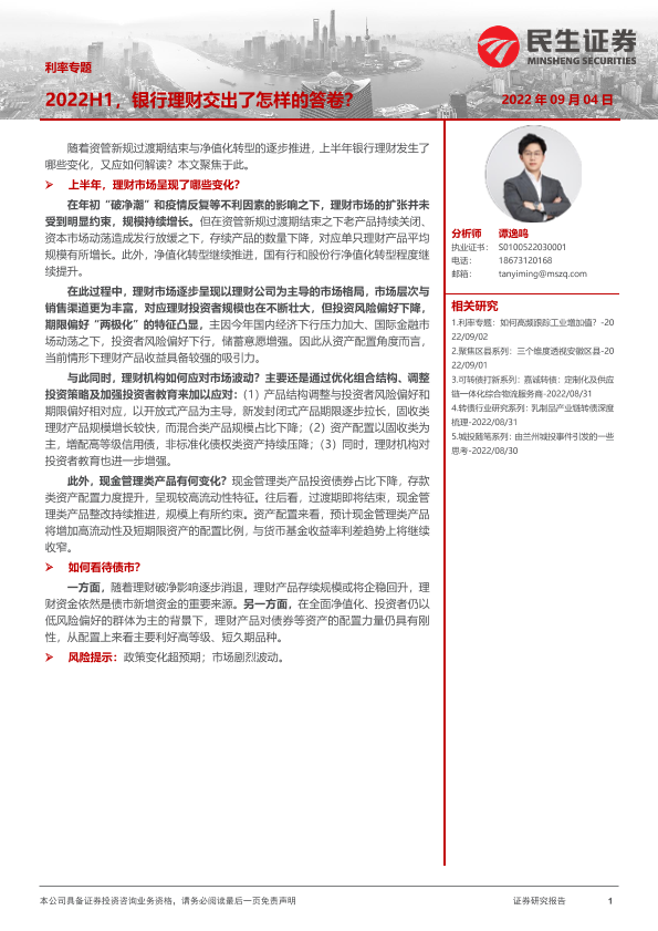 【民生证券】【20220904】2022H1,银行理财交出了怎样的答卷?-18页