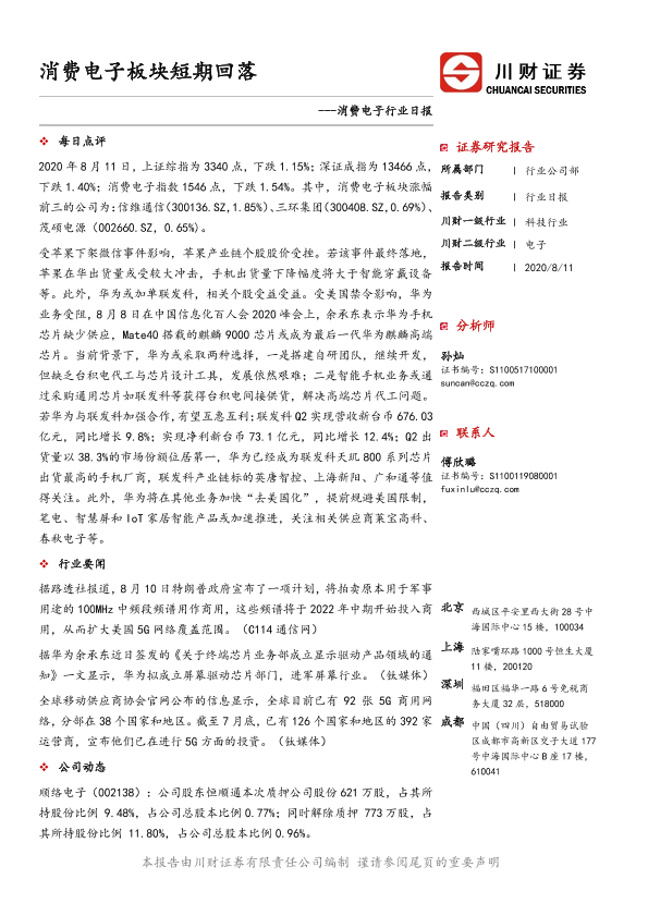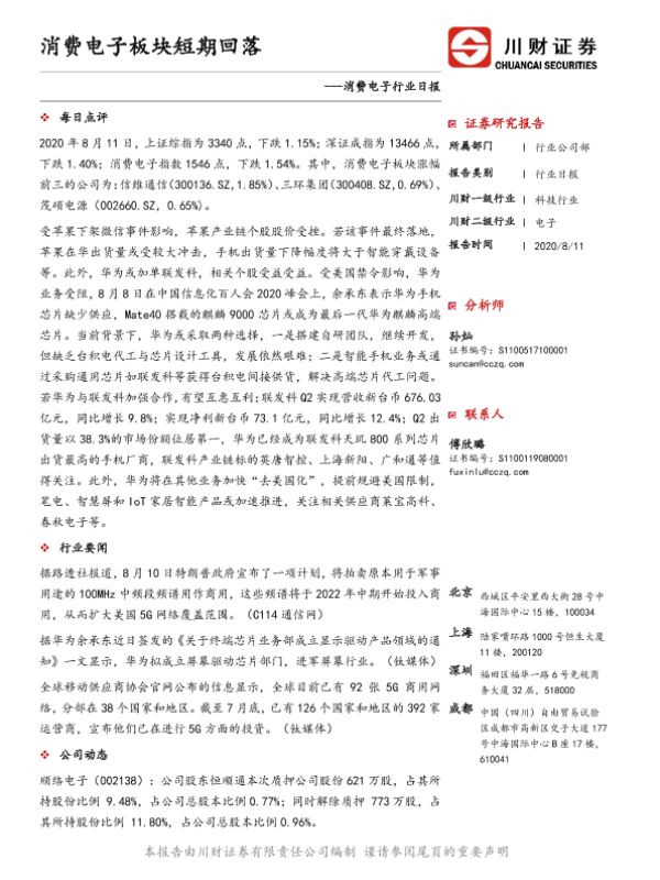 【川财证券】【20200811】消费电子行业日报:消费电子板块短期回落-4页