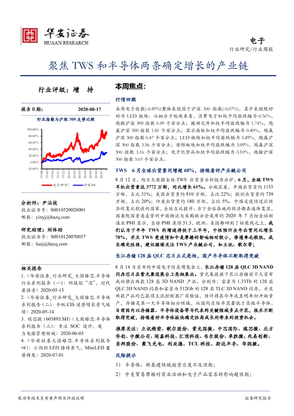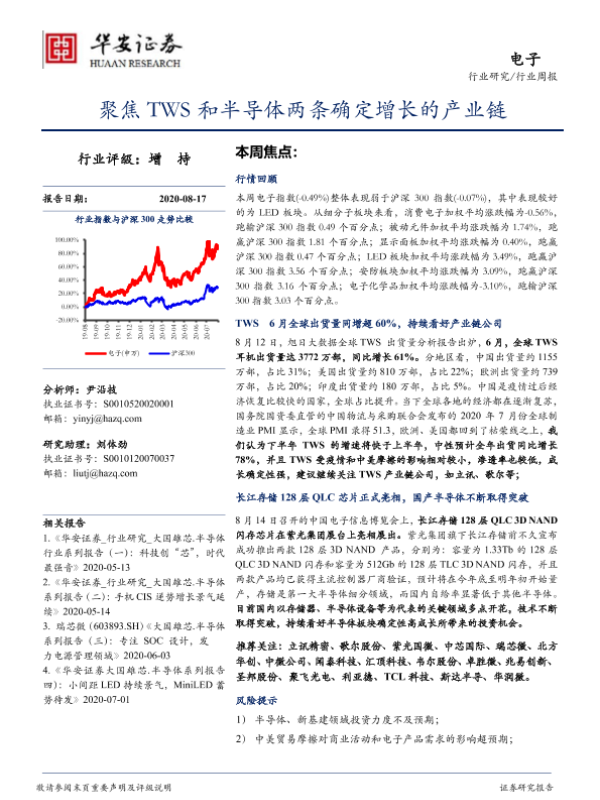 【华安证券】【20200817】20200817-华安证券-电子行业周报:聚焦TWS和半导体两条确定增长的产业链-14页