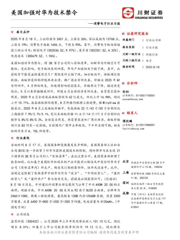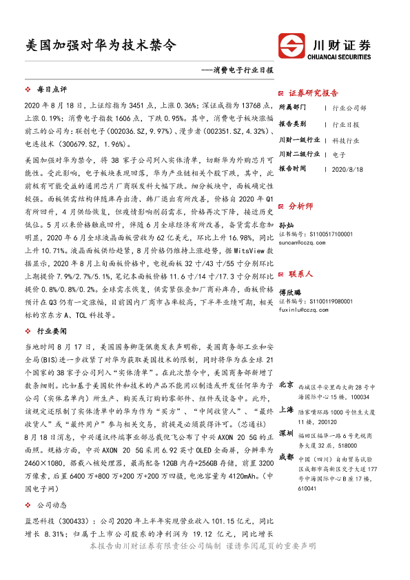 【川财证券】【20200818】消费电子行业日报:美国加强对华为技术禁令-4页