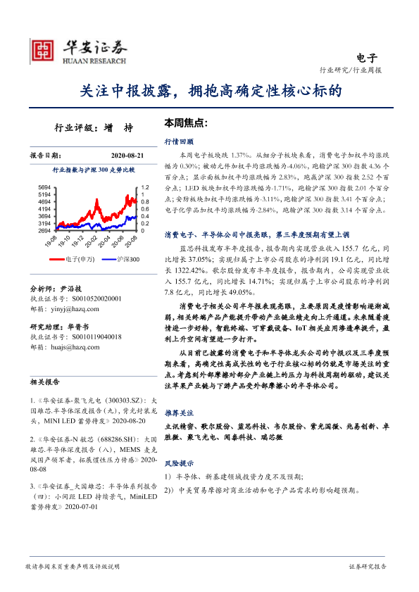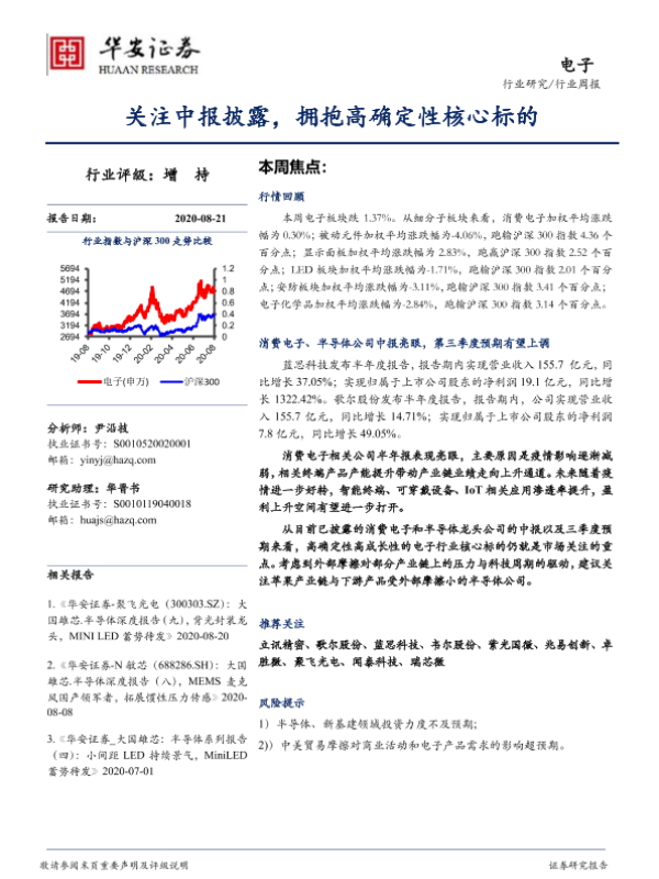 【华安证券】【20200821】20200821-华安证券-电子行业周报:关注中报披露,拥抱高确定性核心标的-13页