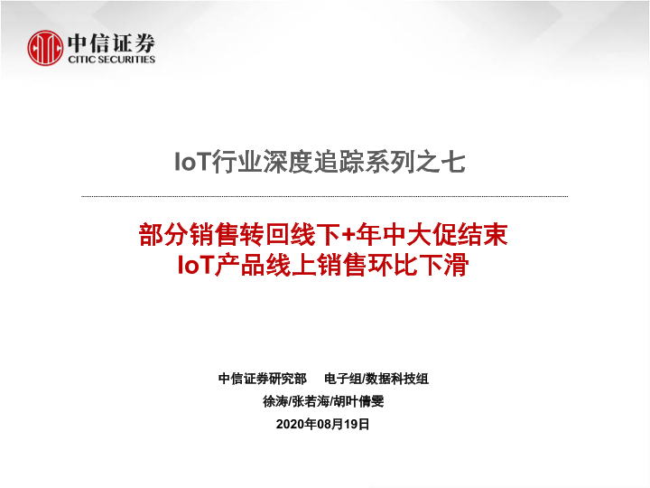 【中信证券】【20200819】IoT行业深度追踪系列之七:部分销售转回线下+年中大促结束 IoT产品线上销售环比下滑-45页