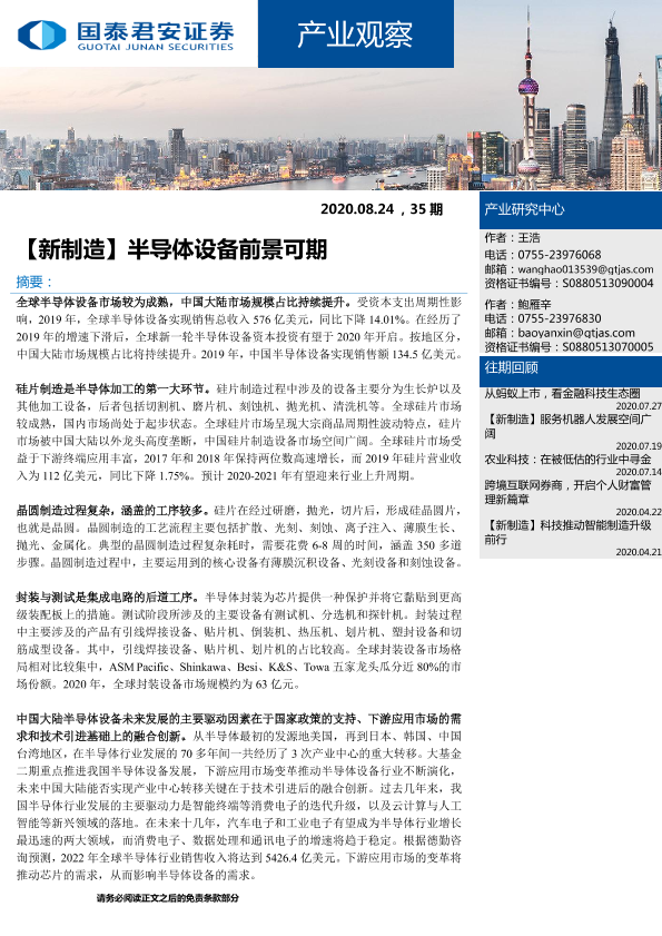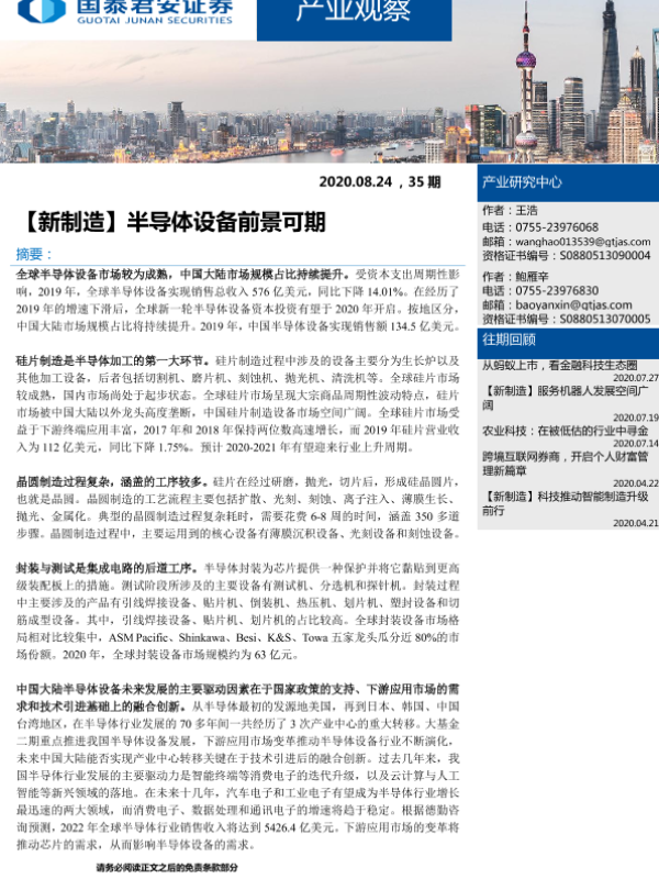 【国泰君安证券】【20200824】【新制造】半导体设备前景可期-27页