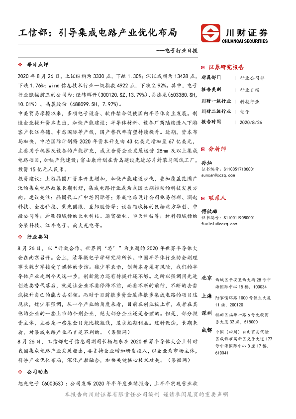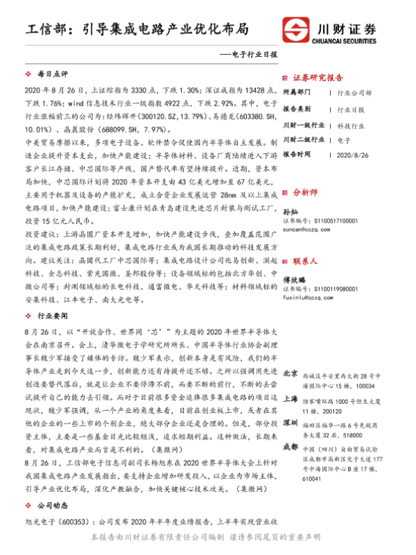 【川财证券】【20200826】电子行业日报:工信部:引导集成电路产业优化布局-5页