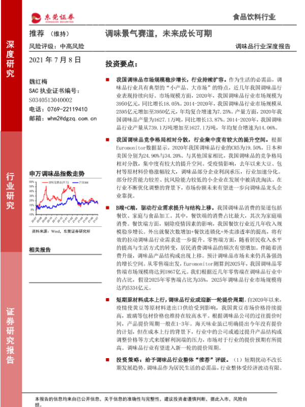 【东莞证券】【20210708】调味品行业深度报告:调味景气赛道,未来成长可期-36页