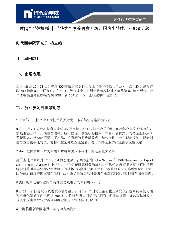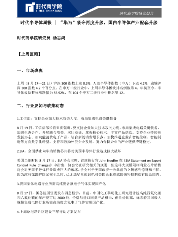 【时代商学院】【20200828】时代半导体周报:“华为”禁令再度升级,国内半导体产业配套升级-4页