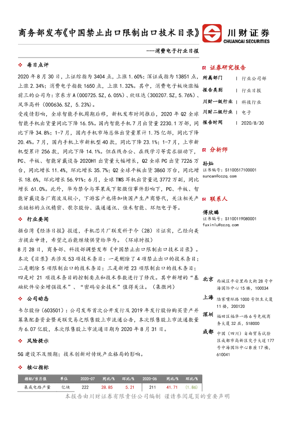 【川财证券】【20200830】消费电子行业日报:商务部发布《中国禁止出口限制出口技术目录》-4页